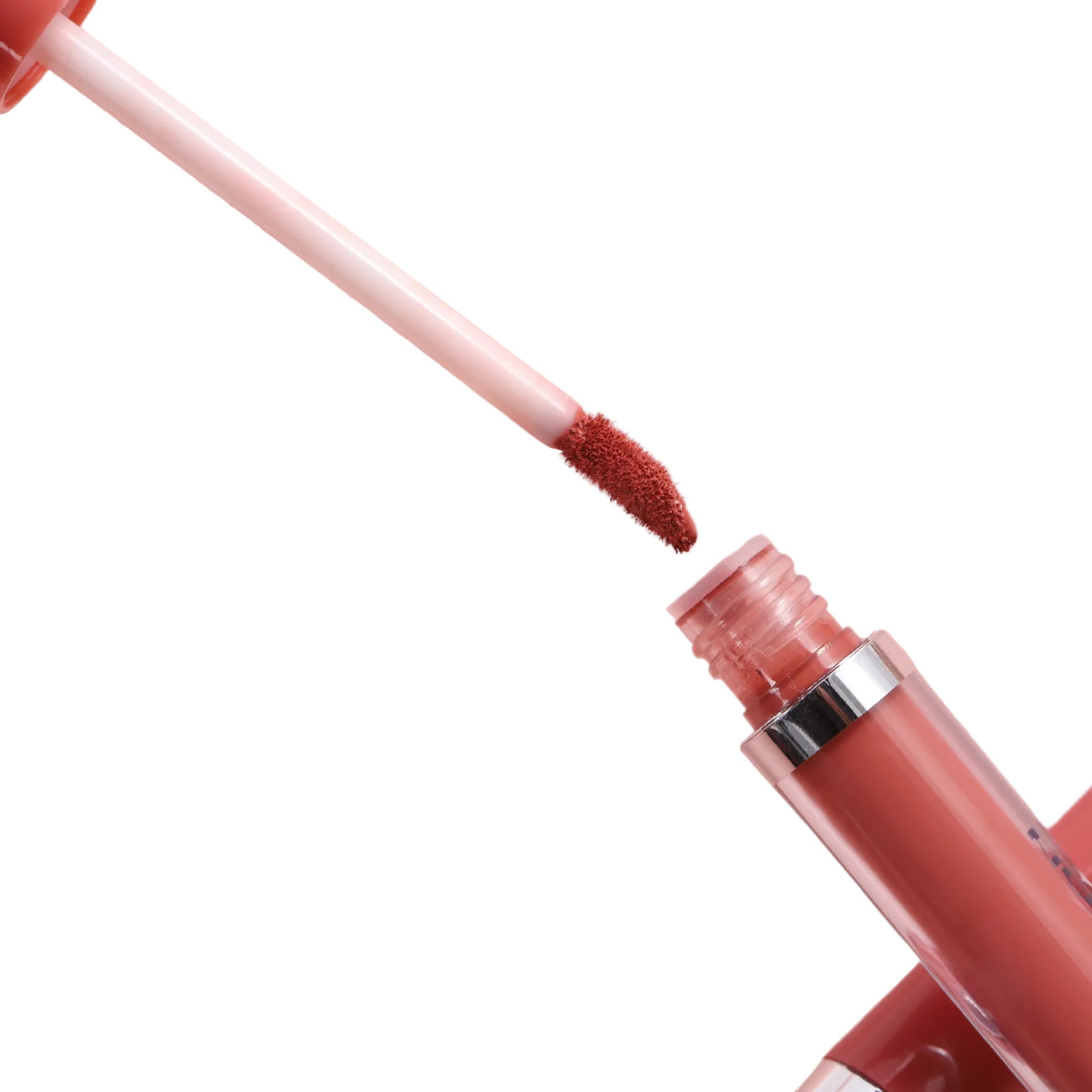 Use the doe foot applicator to apply a thin layer of liquid lipstick from the center of the lips outward.